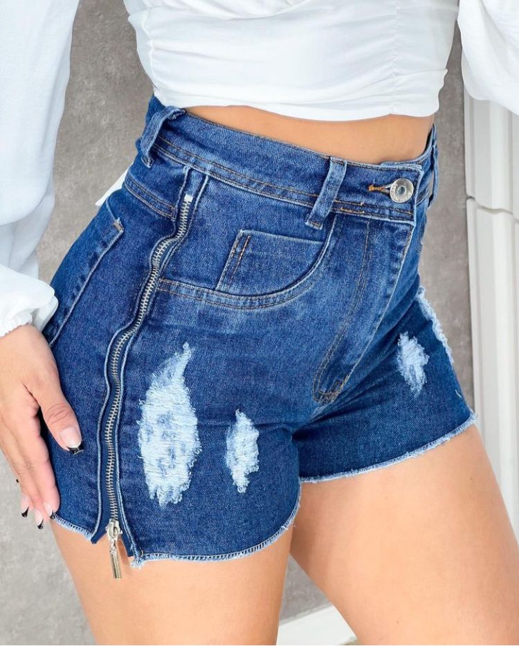 Short jeans com zíper nas laterais – Possui Stretch
